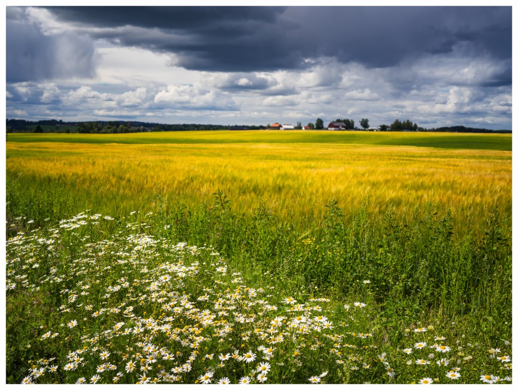 Først et landskapsbilde fra Nordbytjernet. Bildet viser at kameraet strever med å gjengi detaljer i skyene. Jeg kunne selvsagt undereksponert bildet noe, men da ville skyggepartiene gro helt igjen. Når jeg studerer RAW-filen, ser jeg at jeg kunne ha hentet ut flere nyanser i himmelen dersom jeg hadde konvertert bildet fra RAW-filen i stedet for å bruke JPG-filen fra kameraet.
